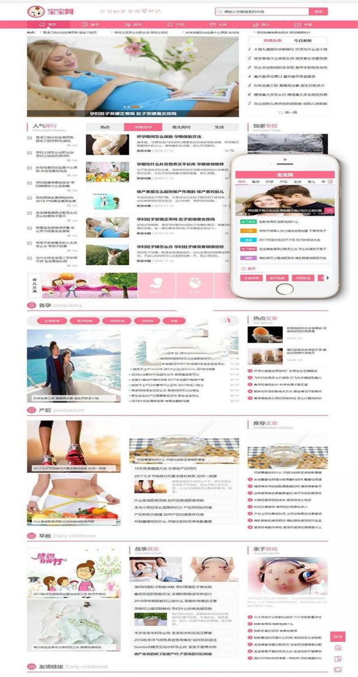 模板介绍: 最新模板,该模板属于健康养生、育儿、母婴类企业都可使用, 这款模板使用范围极广,不仅仅局限于一类型的企业,你只需要把图片和产品内容; 换成你的,颜色都可以修改,改完让你耳目一新的感觉! 自带最新的手机移动端,同一个后台,数据即时同步,简单适用! 原创设计、手工书写DIV+CSS, 完美兼容IE7+、Firefox、Chrome、360浏览器等;主流浏览器; 页面简洁简单,容易管理,DEDE内核都可以使用;附带测试数据!